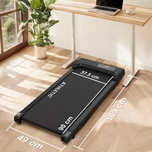 Ja! GOFIT Walking Pad är designad för ultralåg ljudnivå och har en platt, utrymmessparande design som gör att du snabbt kan skjuta in den under sängen, soffan eller skrivbordet när den inte används.