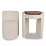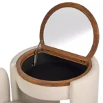 Skapa en lugn och stilren beauty-hörna med detta kompakta och eleganta Vanity Set. Den mjuka elfenbensfärgade klädseln kombineras harmoniskt med varm brun träfanér och ger ett modernt men ombonat intryck – perfekt för skandinaviska hem.